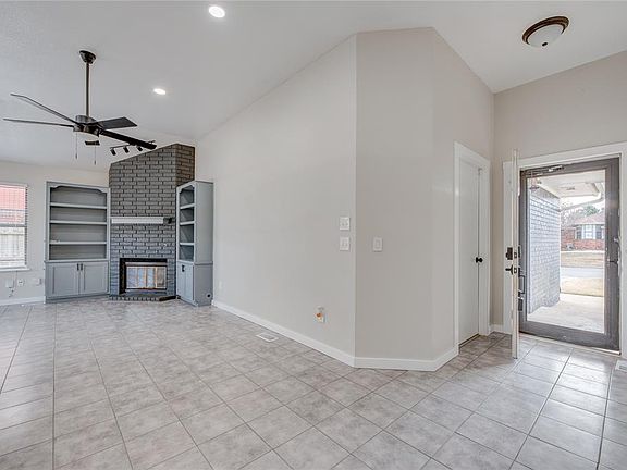 This beautifully updated home in NW OKC combines modern elegance with everyday functionality. Step into the open-concept living area featuring a cozy fireplace and brand-new tile flooring, seamlessly connecting the dining and kitchen spaces.