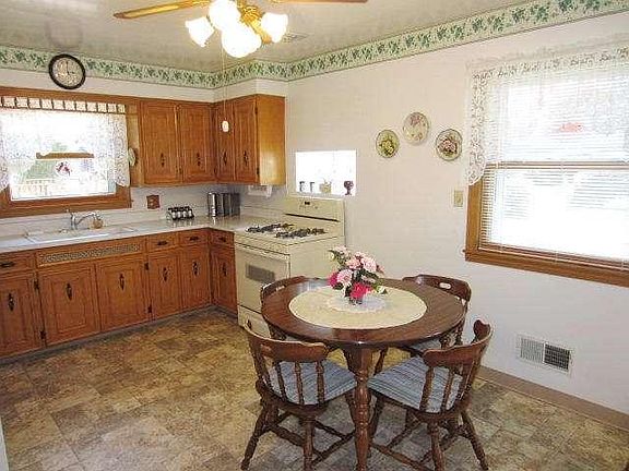 Solid South Side brick ranch home offering 3 bedrooms. The eat in kitchen is a generous size and is light & bright. Hardwood floors under carpeting can easily be uncovered and refinished.Large great room is perfect for entertaining along with the finished basement rec room with bar. All appliances are included with the refrigerator being only 1 year old. Replacement windows and updated 100 amp service are great features of the home. Fenced in back yard and 2 car detached garage. Call Today To Set Showing!