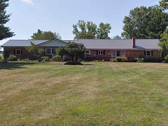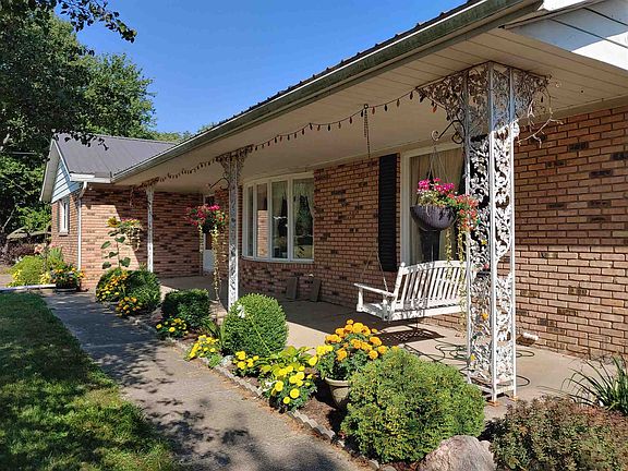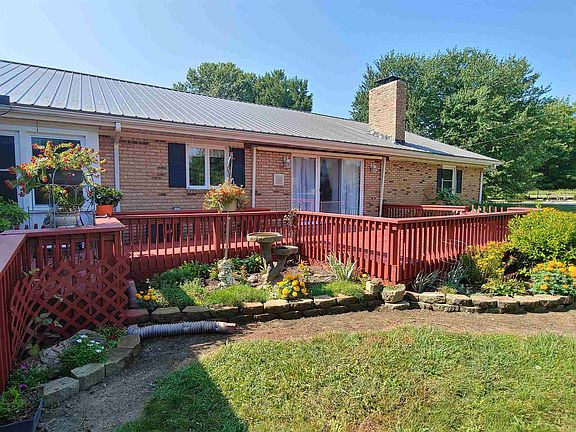 Brick ranch with 5 bedrooms and 4 1/2 bathrooms is a must see! Located on 2.09 acres, the backyard off the newly painted deck is expansive, with cherry blossom, pear and apple trees, along with other beautiful landscaping and raised garden beds. Even a luxury tree house with wrap-around porch in the back corner, nestled among the trees for privacy. The original house has 3 nice-sized bedrooms, 2 having walk-in closets, and 2 1/2 bathrooms. Large eat-in kitchen, along with window seat and kitchen bar, has been updated within the last 3 years. Real hardwood floors in the kitchen and dining room, and engineered hardwood floors in the remainder of the original house. Impressive brick fireplace with wood burning insert in the family room, wooden beamed ceiling, and sliding door out to the back deck. 2 car attached garage enters into original part of the house, to mudroom/laundry area and 1/2 bath. A wing was built on within the last 30 years for handicap accessible living, with 2 large bedrooms, one having an attached full bathroom, and the other having a full bathroom nearby. The 1 1/2 car garage attached to this wing even has a lift to put wheelchairs into cars. Access to the back deck from this wing as well, and a ramp down the deck for ease of access. Updates within the last 7 years include: metal roof, furnace and air conditioner, some windows, chimney tuck pointed, well pump replaced. Full unfinished basement under original house plus lots of storage!
