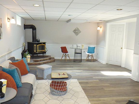 Welcome to this well maintained and well appointed home on almost half an acre. On the outside is low maintenance brick exterior and convenient circular concrete driveway. To the rear is the detached oversized garage with large addition perfect for storage or workshop. An above ground pool with deck, covered side porch, concrete patio area for grilling and 21 X 12 screen porch complete the fenced back yard. The main level is open floor plan with recessed lighting, spacious step down living room featuring a pellet stove for chilly nights, a sky light and French doors to the covered side porch. The dining room is open to the gourmet kitchen with pendant lights over the breakfast bar, stainless steel appliances, wall oven, gas cook top with built in microwave and ample counter space. Upstairs is a primary suite with full bath, walk in closet and office area. The lower level has a fourth bedroom, full bath with laundry area and large family room with wood burning stove, extra refrigerator and freezer perfect for entertaining. Each level has convenient extra closet and storage space. The architectural roof is a 25 year roof installed in 2018. HVAC was replaced in 2019 and water heater is four months old.