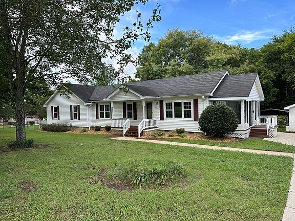 Please note that a new dimensional roof and new gutters were recently added to the house. You are invited to ''be our guest'' and tour this single-level home on a flat, approx. ¾ acre lot, with four bedrooms and three full bathrooms. Inside, past the covered rocking chair front porch you enter the living room with a view of the large kitchen, with new appliances, and the separate dining room. You will notice the hardwood floors that run through most of the house. As you go down the hall you will pass a full bathroom on the right and a bedroom on the left. At the end of the hall are the master suite with a 12'x11'' sitting area in addition to the bedroom plus a spacious full bath. Also at the end of the hall are two more bedrooms and a full bath. Off the kitchen is a sun room with three walls of windows and a separate screen porch enclosed with windows. Next to the home is a concrete block, extra-wide single car garage. In the FENCED back yard is another outbuilding and a two-car open metal carport. This home has country only taxes and is not in a subdivision with restrictions, yet close to restaurants and shopping. There are two Trane HVAC package units. Please don't wait; make an appointment today. You can ''be our guest'' or better, bring an offer.
