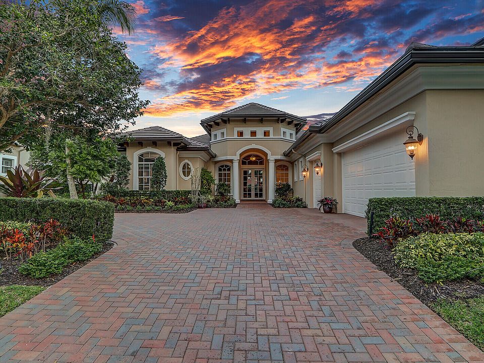 RENOVATED and move-in perfect Dreamstar Custom Homes' ''Carina V'' 4BR/5BA+Den. With a NEW ROOF AND GUTTERS (2023), this exceptional home features IMPACT GLASS throughout, and a Generac FULL-HOUSE GENERATOR (2022) with a 10-year warranty. Luxurious marble flooring in the main living spaces, and REAL Red Oak wood flooring recently installed in all bedrooms and office. Extensive crown molding and superior builder craftsmanship is evident throughout this sought-after floor plan. With an eastern exposure in the rear of this home, the backyard space has been reimagined with all new landscaping an extended patio, outdoor kitchen, and beautifully redone and resurfaced pool and spa along with a pool equipment renovation. The magnificent backyard provides lots of covered space, and picturesque views of Nicklaus-designed Tradition #17's golf and lake views. New fencing has been installed all around the property. The BREATHTAKING CUSTOM KITCHEN renovated in 2022 has major wow-factor and boasts new custom cabinetry and quartz countertops, and Fulgor Milano appliances (2 refrigerators, 48" 6-burner range, dishwasher, microwave and 60 bottle wine tower.) An electric fireplace was installed in the family room designed to complement the custom kitchen. Phantom Screens were installed on living room and family room doors, allowing fresh air into both spaces. The living room graciously expands to the outdoor space with French Doors. The over-sized Primary suite features two spacious walk-in closets, which were outfitted with new closet systems. The Primary Bath was renovated with new cabinetry and quartz counter tops. The large Primary bedroom features Levelor automated shades. The three spacious guest bedrooms are all en-suite. Other useful enhancements include: All door hinges and door knobs, completely redone driveway with new pavers. The entire home was painted in 2024 and an electric charger was installed in the garage in 2022. Practically every aspect of this homeinside and out--has been renovated, upgraded, or enhanced. Simply move right into this magnificently reimagined property. The Club at Ibis is an award-winning community that boasts a 90,000 sq. ft. clubhouse, three 18-hole Nicklaus-family Championship courses, five restaurants, a world-class fitness complex, spa, and incredible tennis and pickleball facility.