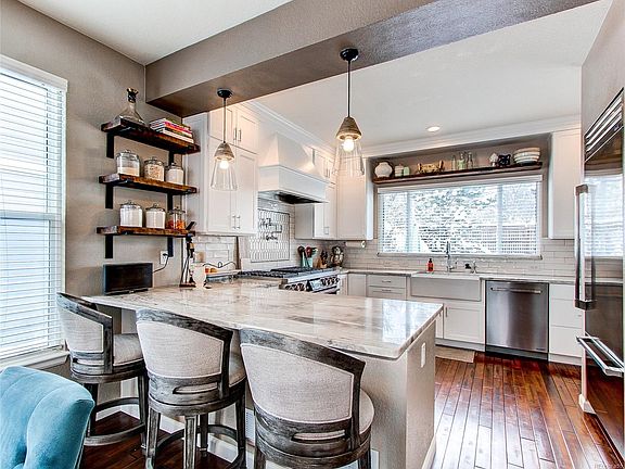 WOW!! You will not find a more quality home at this price! NEW $80k high end custom kitchen with true professional appliances! 6 burner + Grill & 2 oven Dacor stove! The most beautiful Quartzite counters you will ever see! Stove has pot filler! Farm Sink and gorgeous white cabinets! The floors are hand scraped hardwood and upgraded carpet! This house backs to the Highline Canal Trail for all your recreational needs! Located in the Cherry Creek School District, very rare for a Denver address. The location is close to light rail and a quick commute to Downtown or the DTC! Upstairs find a great master bedroom and bath with upgraded countertops, and a RIDICULOUS closet! Two secondary bedrooms and bath round out the upper level. The basement has a bedroom, bath, spacious secondary family/great room, and additional flex space. The home has a great back yard with a spacious patio. The detached 2 car garage is oversized and insulated! The opportunities in this property are endless!