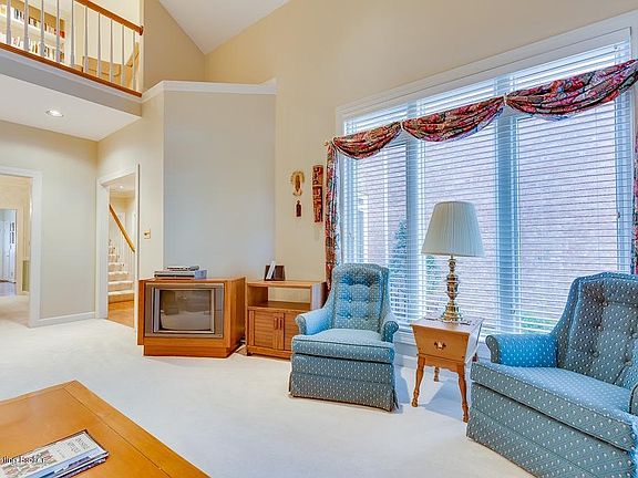 Your luxury Hunting Creek townhome awaits, boasting a convenient first floor master suite! The home is enveloped with mature trees, detailed with sidewalks and lamp posts, and framed with a brick/wrought iron courtyard. Enjoy the convenience of maintenance-free condo living with 3 spacious bedrooms, an attached two-car garage, and a finished lower level. Natural light spills through the home with large windows and transoms! The home's great room features a soaring vaulted ceiling, an exposed loft banister, and a stately fireplace. The great room flows seamlessly to the formal dining room, appointed with chair rail and crown molding. Discover the generous eat-in kitchen, finished with hardwood flooring and abundant lighting. (Click to continue)