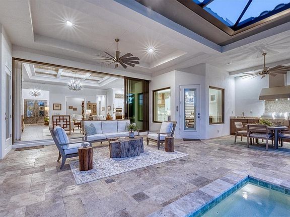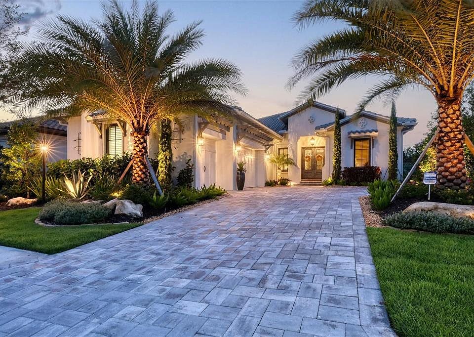 Why build? Why bother...when this 2021 charming, comfortable, and luxurious HOME is available in the prestigious and upscale Lake Club neighborhood in Lakewood Ranch. In the highly desirable Matera section of the Lake Club, exclusive maintenance of both the grounds, irrigation and the pool won't be found in any other section or neighborhood. Adding to your ease of maintenance and peace of mind, this 2021 Lee Wetherington home is Florida Green Home Certified and is approximately 50 percent more energy efficient than a standard new home and enhanced with impact windows and doors. This residence is like NEW without the need to wait on the lengthy construction process. Enter through double handcrafted iron doors, and see the level of luxurious upgrades throughout the home including designer chandeliers with medallions, plantation shutters, square LED recessed lighting, tall crown molding, wood-look plank tile flooring, and wide open floor plan. Custom features abound in the great room including a cypress wood and modern beam coffered ceiling, and shiplap feature wall. Large pocketing sliding glass doors invite you outdoors to the expansive travertine lanai with a refreshing heated, saltwater pool and spa with water feature. Under an expansive covered lanai, enjoy alfresco meals from the outdoor kitchen with stainless steel grill and beverage cooler, plus space for dining. Or venture into the chef's kitchen to prepare meals with finesse using the GE Monogram stainless steel appliance suite atop quartz counters and chic white cabinetry. Guests will gather around the large central island with counter-height seating, or enjoy the adjacent dining room with large windows overlooking the lanai. Completing this space is a custom mosaic glass tile backsplash extending above the cabinetry, and a custom hidden walk-in pantry. A convenient den is nearby with double door entry and can be flexible as a home office or bonus space. The master suite is the pinnacle of comfort with plush upgraded Mohawk carpeting, triple tray ceiling, and large windows to take in the verdant landscaping. A walk-in closet with custom shelving will neatly fit all of your belongings, and a second walk-in closet has been converted to a hidden office to make working remote a breeze. The spa-like master suite features opulent upgrades with a shiplap feature wall, freestanding tub, oversized walk-in shower with frameless glass enclosure and wall-to-wall mosaic shampoo niche, and large vanity with quartz counters and designer mirrors. Family and friends can enjoy the same level of comfort in the two guest bedrooms with soft carpets, custom closets, and guest bathrooms with luxurious showers. Rounding out this amazing home is a large laundry room with extra counterspace, a Florida Basement storage room, extra linen closets, and a 3-car side loading garage with epoxy flooring. The lush landscaping is HOA-maintained and showcases Italian Cypresses, Date Palms, cacti, and more all in neatly manicured beds with lighting. The Lake Club is a premier community including a grande clubhouse, restaurant, pool, tennis, playground, basketball, Linear Park, walking trails, fitness center, and interlinking lakes for kayaking or fishing. Local golf club memberships are available nearby at Lakewood Ranch Country Club, Ritz Carlton, and the Concession. Lakewood Ranch is one of the top-selling master-planned communities in the country with delightful shopping, dining, schools and nearby beaches.