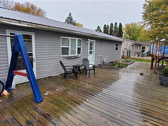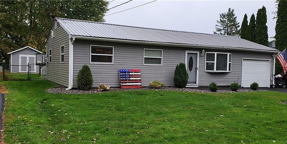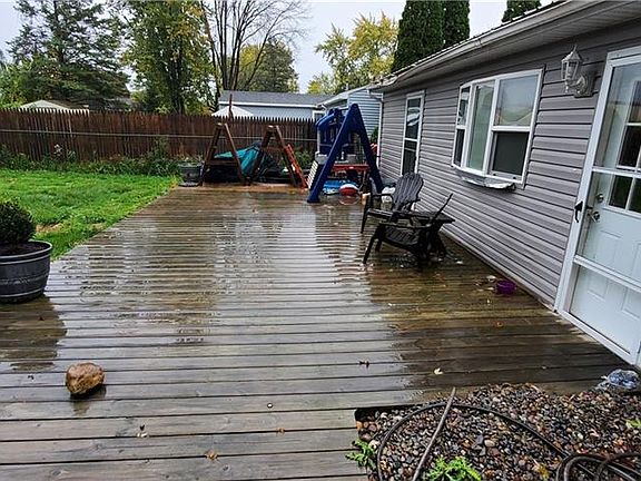 Great ranch 3 bedroom 1 full bathroom totaledy remolded bath with laundry. Full tile floor in kitchen and hallway. Large bay windows in both living room and kitchen. Walk out kitchen or garage to 16 x 50 foot deck and pool deck as well,large yard with no neighbors behind. 2 sheds 6x10 and 12 x12 vinyl sided with power. Fully fenced back yard. 24 foot round pool needs liner and wall support. Living room with gas fireplace with built in speakers sera s ,tv bracket and wires run for cable and hdmi. Huge driveway double wide and on side of of garage for 6 cars. One car attached garage with attic access and lots of shelf's and 220 power. One of the bedrooms has awsom 2 desk set up awsom built in office set up.