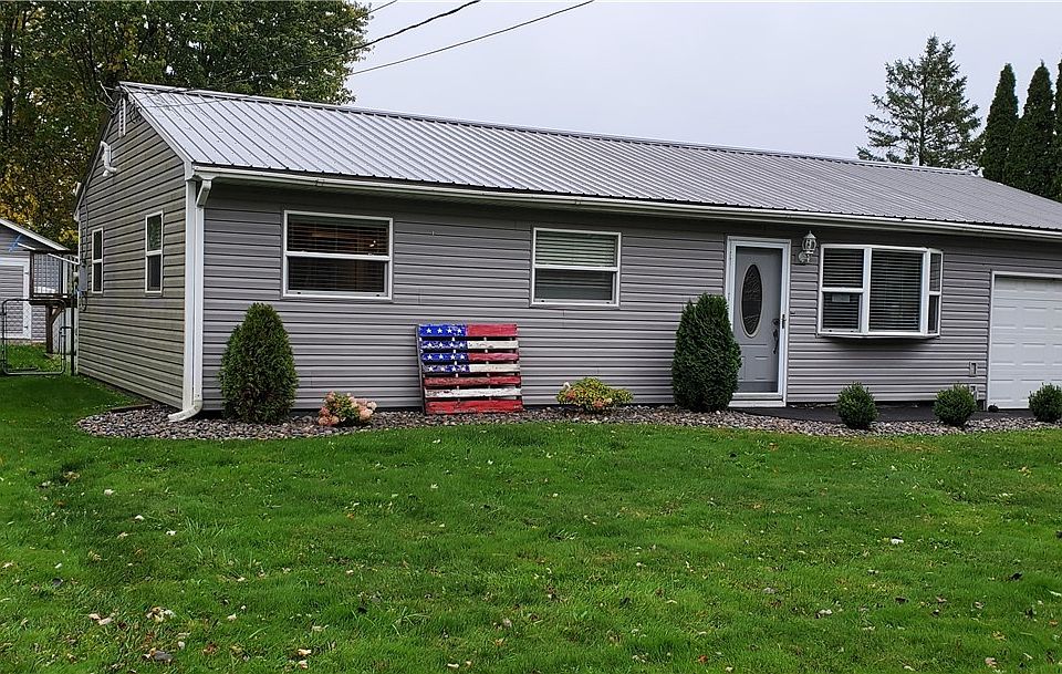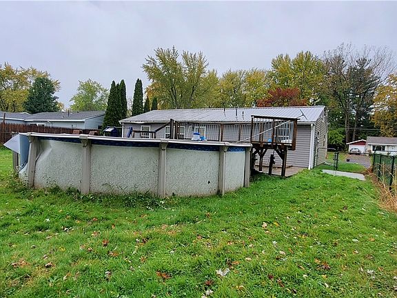 Great ranch 3 bedroom 1 full bathroom totaledy remolded bath with laundry. Full tile floor in kitchen and hallway. Large bay windows in both living room and kitchen. Walk out kitchen or garage to 16 x 50 foot deck and pool deck as well,large yard with no neighbors behind. 2 sheds 6x10 and 12 x12 vinyl sided with power. Fully fenced back yard. 24 foot round pool needs liner and wall support. Living room with gas fireplace with built in speakers sera s ,tv bracket and wires run for cable and hdmi. Huge driveway double wide and on side of of garage for 6 cars. One car attached garage with attic access and lots of shelf’s and 220 power. One of the bedrooms has awsom 2 desk set up awsom built in office set up.