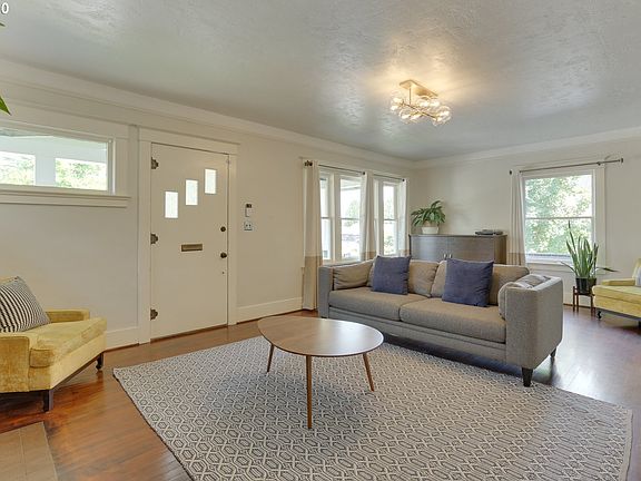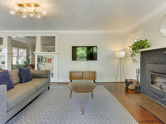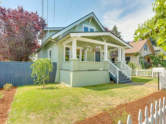 Darling craftsman bungalow home on a corner lot! Welcoming front porch leads you into a formal LR w/hardwoods, wood burning insert, high ceilings + plate rails. Through a graceful archway is the formal DR w/blt-in features. Kit w/new flooring, ss appl, gas range, nook. Full ba w/tile floor, shower w/subway surround. Three bedrooms up w/carpets,blt ins, period lighting and details. LL full unfinished basement. Peaceful, private yard w/gardens, patio, fruit trees, garden shed. [Home Energy Score = 1. HES Report at https://rpt.greenbuildingregistry.com/hes/OR10026775]