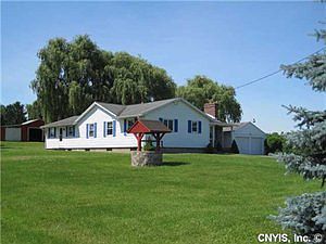 THIS 1920 SQ. FT., 5 PLUS BEDROOM HOME HAS MANY FEATURES AND UPDATES. LOCATED APPROX 7 MILES FROM WATERLOO AND WEEDSPORT THRUWAY EXITS. ARCHETECTURAL SHINGLED ROOF. VINYL SIDED HOME IS ON 2 ACRES AND AN INGROUND POOL, BATHHOUSE, 2-CAR ATTACHED GARAGE AND OUTBUILDING. INSIDE, THE KITCHEN BOASTS OAK WOODMODE CABINETS, DOUBLE PANTRY AND PERGO FLOOR. BUILT-IN JENN AIR ELEC OVEN AND STOVE. LARGE EAT-IN KITCHEN, BREAKFAST BAR. TRADITIONAL OAK HARDWOOD FLOORS UNDER WALL-TO-WALL CARPETS (LESS THAN 5 YRS OLD). NEW DUNKIRK BOILER IN 2009, HOT WATER HEATER IN 2008. FIREPLACE. 196 SQ ' GARAGE/ OPENERS
