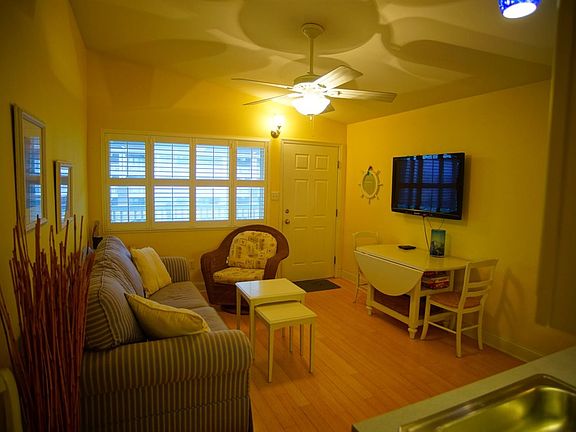 Bright and airy, with an ocean view from your front porch! This 1 bedroom, 1 bath condo offers an astounding combination of a beachblock location, an onsite pool, and an ocean view. Located in Avalon's south end, the beach is just steps away, along with numerous restaurants. Park the car in your reserved spot and walk everywhere! If you're in the mood to stay put you'll find everything you need right on site. The onsite pool is refreshing and inviting; a grilling area awaits--just bring your burgers or steaks! If you'd rather, relax inside in the central air conditioning while watching the flat screen TV! This unit is currently unrented, allowing you to enjoy it all summer. If that's the case, act fast, otherwise the current owners will soon be placing it on the rental market to capitalize on this unit's great rental potential, as evidenced by years of strong rental history. (Water, sewer, and wireless internet are included in the condo fee. The condo fee of $1506.57 per quarter includes a $600 per quarter special assessment.)