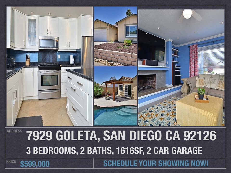 This 1616 square foot single family home has 3 bedrooms and 2.0 bathrooms. This home is located at 7929 Goleta Rd, San Diego, CA 92126.