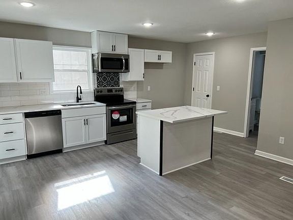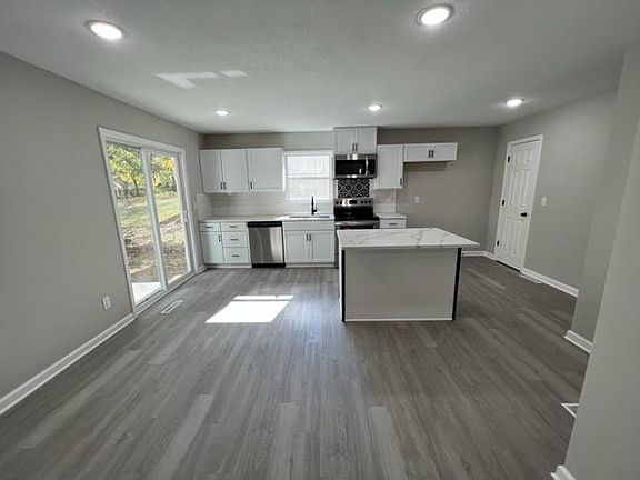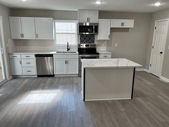 Welcome home to this totally remodeled side-to-side split home sitting on a large lot with mature trees. As you enter the front door, you will feel the spaciousness of this open floor plan. The great room features a vaulted ceiling with wood beam and an accent wall surrounding the fireplace. The great room flows into the kitchen with new white shaker-style cabinets, quartz countertops, new custom tile backsplash with accent tile, all new stainless-steel appliances and a walk-in pantry adjacent to the kitchen. First floor laundry room has been created with a custom bench, shelf, and hooks. A half bath has been added to this home. The primary bedroom features new plush carpeting and a remodeled en-suite bath featuring a custom tiled shower with mosaic niche, a new toilet, vanity, and solid surface top. Two additional bedrooms and a remodeled hall bath