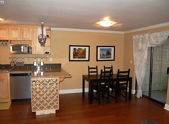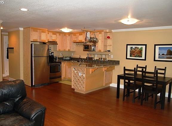 Completely remodeled ground level condo in great community from Mult Village! New bamboo floors throughout. Kitchen w/ new slab granite counters & backsplash, maple cabs, ss appls & overhead pot rack opens to dining & living areas. Crown molding in living area. Outdoor patio off dining area has a locked storage room. Refr & W/D included. Enjoy the comm outdoor pool & hot tub. SELLER WILL PAY FOR BUYERS 1ST 6 MOS OF HOA DUES @ CLOSING!