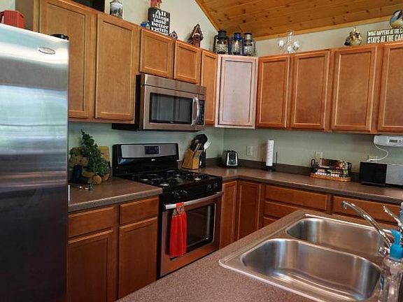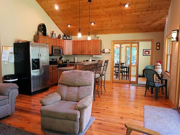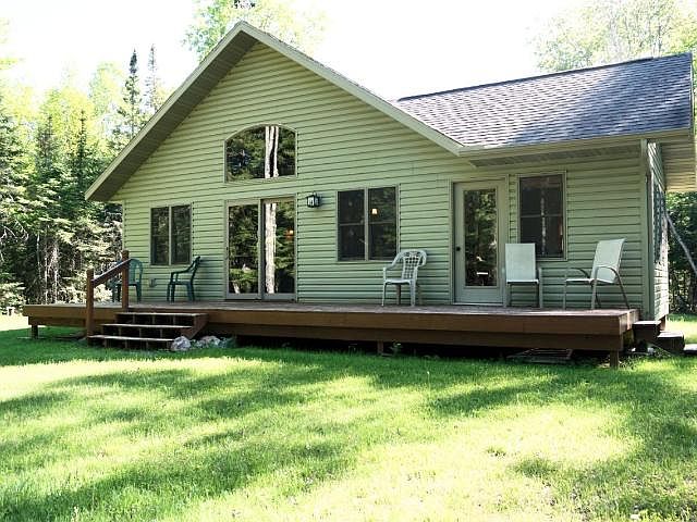 A ten year new lake front cabin in the woods with privacy and seclusion. You will have a great view of the lake from the great room. The great room has tongue & groove hard pine floors. The pine wood vaulted ceiling gives the kitchen & great room a spacious feeling. A four season multi-purpose room is located just off the kitchen. Two carpeted bedrooms and a full bath round out the main level. The full basement is framed up with a rec-room and a third bedroom ready to be finished. The full bath in the lower level is finished. Two egress windows make the lower level very usable. Two hundred sixty five feet of lake frontage makes this a very enjoyable four season vacation property.
