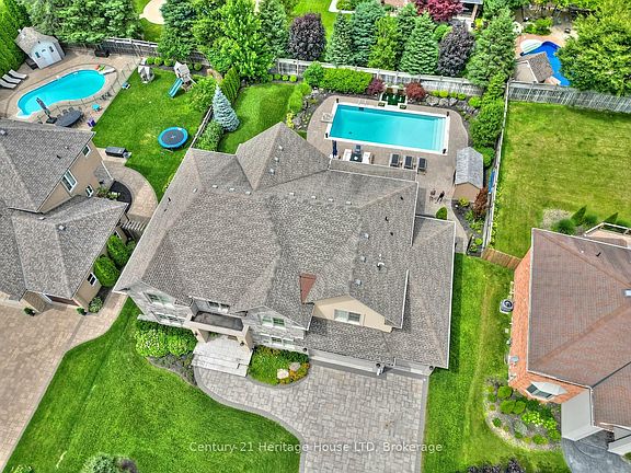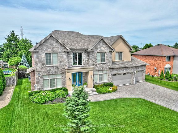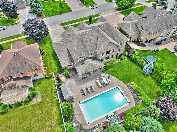 Welcome to Mount Carmel - One of the most luxurious neighbourhoods in Niagara Falls! This Executive estate offers nearly 6000 sq ft of finished living space, a beautifully landscaped backyard with a stunning inground pool, 5 full bedrooms on the 2nd level, and a fully finished basement! Surrounded by other prestigious homes on a highly desirable street, this property is located just minutes to Niagara on the Lake where you'll enjoy world renowned wineries and fine dining. The luxurious curb appeal is sure to impress with a triple car interlock driveway, beautiful landscaping, and double doors that lead to your grand 2 storey entryway with beautiful curved staircase with custom railings - creating the ultimate first impression. The main floor features a living room with gas fireplace, formal dining room, a family room with 2 storey ceilings, gas fireplace, wet bar, and large windows overlooking the beautifully landscaped backyard. The high-end kitchen features modern white cabinetry, a large centre island, quartz counters, s/s appliances & tile backsplash. A convenient main floor laundry/mud room with inside access from the triple garage, a 2pc powder room for guests, and main floor office completes the main floor. The 2nd level offers a stunning catwalk which overlooks the family room below, and 5 bedrooms with 3 ensuites, and a separate 4pc bath. The primary suite offers a large ensuite with double sinks and custom glass and tile shower, and a 11 x 9 ft walk-in closet. The basement offers endless opportunities with a rec room, theatre room, billiards room, games room, and another 3pc bath. Step into your backyard oasis which is truly an entertainer's dream with an 18 x 40 ft pool with fountain area, hot tub, large interlock patio with multiple lounging and dining areas, a covered patio with fan, skylights and pot lights over your custom outdoor bar/bbq area with stone counters. Pool heater and pump replaced in 2024.