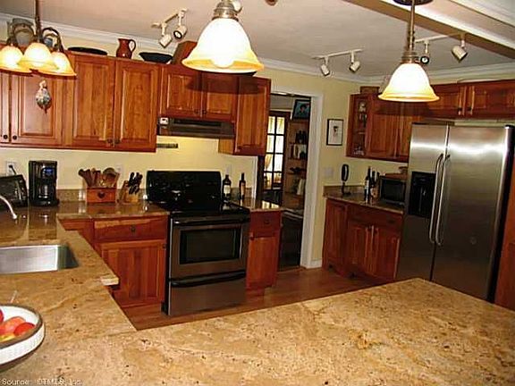 Serenity awaits you at this beautifully-maintained colonial in a private country setting. In the heart of the home is a nice open floor plan with the kitchen flowing to a family room and sitting area that runs the full length of the first floor. The custom woodwork, columns and paneling add to the warmth of the space. After a nice day of hiking or cross country skiing on the near by trails, you'll be ready to relax by the beautiful fireplace. With 35,000 BTUs and a thermostatic remote, you'll be cozy in any weather. And the wood burning stove in the basement makes the whole first floor toasty in the winter. While the floor plan is open, there are still plenty of private areas for family members to work or study from home. The bonus room above the garage is currently used as the main master suite, but the space offers the flexibility for other purposes such as a home office or home school. If you love the sounds of nature you'll love the beautiful grounds. In the backyard there is a large deck overlooking the level backyard with another gathering place around a fire pit. In the front yard, sit on your patio with its whimsical rain chain and copper pot for a totally different view of the natural surroundings. Come experience all that Guilford has to offer - including the quaint town center with its picturesque green, shops and restaurants. You'll enjoy the quiet location in North Guilford while appreciating the proximity to the train station, marina, and public beach.