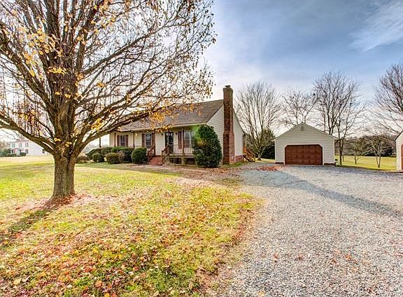 Welcome home to a well maintained rancher on an almost 2 acre lot with a 1.5 car garage! As you approach the home you are greeted by a large front yard, long driveway, and full front country porch with beautiful views in sight. Enter the home to a well appointed living room with vaulted ceiling, carpet, ceiling fan and gas burning fireplace. The eat-in kitchen also has a vaulted ceiling and boasts hardwood floors, walk-in pantry, washer and dryer closet, and access to the rear deck. Walk down the hallway to 3 generous sized bedrooms, including 2 bedrooms with carpet, ceiling fans and double door closets, while master bedroom also has carpet, a walk-in closet and en-suite! Imagine drinking your coffee on the back deck under the pergola while watching the sunrise at what feels like your own little oasis. Other notables include: newer roof, newer heat pump, detached garage and detached shed. This home has been meticulously maintained and cared for with just one original owner.