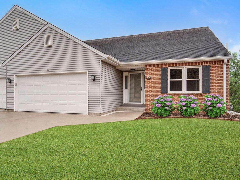 Delightful condominium! Step into the entryway and be captivated by the sunlit great room featuring a vaulted ceiling, a cozy natural fireplace and a spacious deck with views of the wooded backyard. The bright & airy kitchen seamlessly flows into the dining area, perfect for entertaining. The generous primary bedroom boasts a walk-in closet & an ensuite bath. A second well-sized bedroom, a laundry area with cabinetry and another full bath complete the main floor. Open stairs lead to the lower level family room with a walk-out patio. You will love the epoxy garage floor! Gardeners will love the southern exposure & golfers will enjoy the nearby golf course. Sought-after location & excellent curb appeal! No HOA fees. Pets are welcome! *The exterior photos have been digitally enhanced*