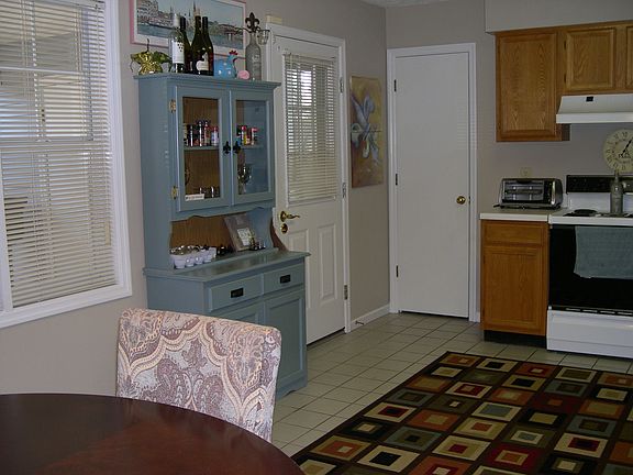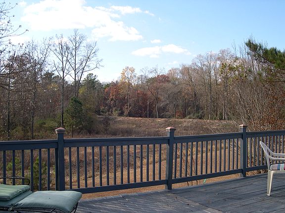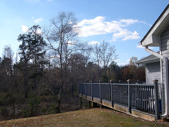 2 bedrooms 2 baths 1,179 sq feet Large master suite Fireplace Pantry in kitchen Washer and dryer Refrigerator, oven/stove Large deck from kitchen around house to master French doors Concrete slab with vinyl siding Carport with outdoor storage area Cul-de-sac locations Large lot that backs up to wooded area Built in 1991.
