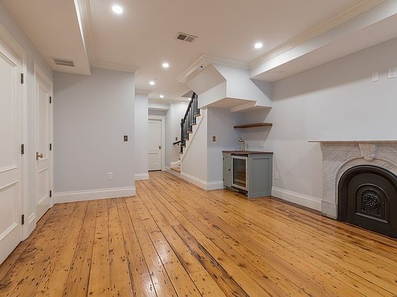 Full gut renovation just completed! Make your single family home dream a reality. This rare spacious single family Brick Row house located in the sought after City Point neighborhood, has four Bedrooms plus an office plus four and a half bathrooms with a large outdoor deck off of the kitchen, with gas grill hook up. This home comes equipped with not only 2 deeded attached parking spaces but also top of the line chefs kitchen with sub zero wolf appliances and two Subzero beverage refrigerator. This rare fully renovated home has a Victorian feel with a modern twist. Including marble mantels, gas fireplace, new reclaimed heart pine floors from longleaf lumber, gas grill hookup, heated bathroom floors, 2 washer and dryer hook ups, tall ceilings, custom built in cabinetry and extensive moldings and details. Move in ready.