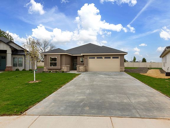 The "Acadia" by Gallery Homes by Varriale. This single level open concept home has a large great room and kitchen with plenty of natural light. Comes standard with wood floors, stainless steel appliances and more.. Located in Merino Cove. A cozy neighborhood located on the border of Kuna and Meridian.