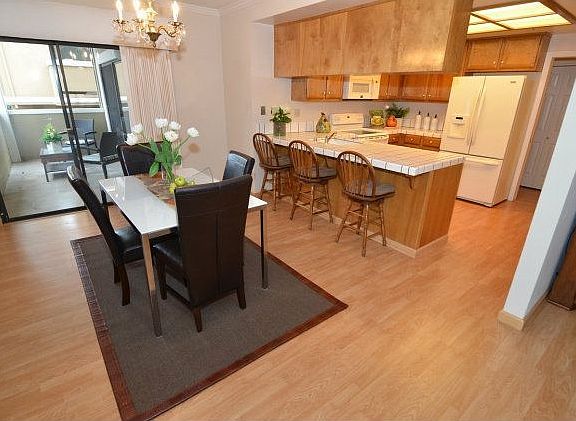 Luxury living in this pristine corner end unit at "ELM PLACE". Beautiful new laminate hardwood flooring. Spacious living room with wood burning fireplace. Spacious dining area with sliding glass door leading to private balcony. Spotless kitchen with ample wood cabinets and counter bar for everyday meals. Lovely master suite with double closets. Separate laundry room. Pool and spa.