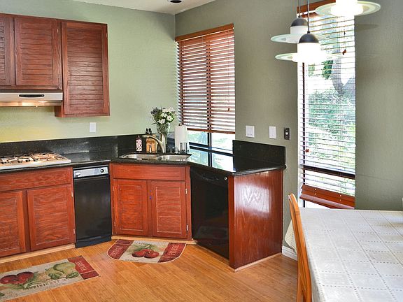 Situated in a private cul-de-sac, this beautiful 3 bed/2.5 bath and a 2 car garage house is in the prestigious gated community of Canyon Lakes. Highly upgraded with open floor plan and natural light throughout. Kitchen offers SS appliances, granite counter with cherry wood cabinetry. Large dining/living room has vaulted ceilings, hardwood floors, and baseboards. New carpet and newly remodeled bathrooms. This is a must see! Neighborhood Description HOA $413/mth covers greenbelt, playground, pool, security gate, tennis court, spa, and tennis court.