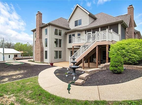 Beautiful Custom Home of Lasting Value will captivate you once you step inside! Open Floor Plan & plenty of natural lighting abound from the 3-sty atrium to the luxurious main floor master bath & more! Formal Dining Room opens into Big Kitchen w/plenty of custom maple cabinetry, granite counters, breakfast bar & more & it flows into the Hearth & Breakfast Rooms. Big Living Room overlooks the atrium & lower level walkout Family Room. Master Suite has 11x12 walk-in closet & the large master bath has separate vanities, whirlpool tub & shower. Additional Main & Upper level Suites & 2 additional bedrooms. The finished lower level has much to offer as well; besides the Family Room there's the Media Room, Workout or additional sleeping room, walkout Recreation Room w/bar & more! Energy efficient, zoned, geothermal HVAC, above ground pool for summer fun, woods for privacy & hiking & a 60x30 Outbuilding, newer roof. Located on 3+ acres peace & quiet abound! Don't Miss This One!