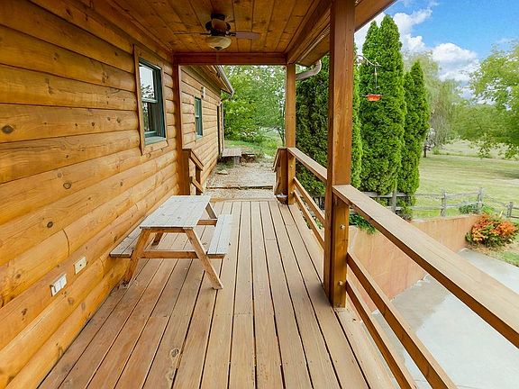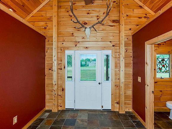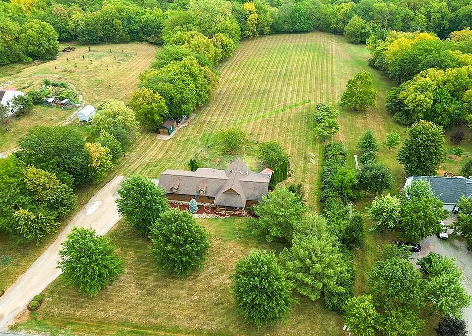 Dream of living in a quiet, county setting? This home is perfect for you! A true log home nestled on a 3.32 acres in a beautiful neighborhood yet conveniently located. When you first enter, you will immediately notice the huge floor to ceiling windows that open up the Great Room to views of your own grassy, treed acreage property....best views in the neighborhood. The vaulted Great Room includes a wood burning stove and gleaming hardwoods that extend into the kitchen, dining, and Master. The kitchen includes NEW 2023 Stainless Steel appliances/sink, plenty of counter space, Decorative glass cabinets doors, and a huge new walk-in pantry! The dining area provides access to a covered deck for even more stunning views. The Master Suite can be found on the other side, with access to its own private covered deck, and Master Bath with whirlpool tub, walk-in shower, double vanity, and walk-in closet. Main level laundry room with tile, built-ins, and sink! The generous-sized, finished walkout basement offers additional living space and leads to a flex space ideal for work out room with bar, home theater area, hobby room or simply utility garage. Two additional bedrooms (one non-conforming) and a generous-size full bath also in lower level. Outside decks, patio, and gazebo make this the perfect outdoor space ideal for entertaining or relaxing. Additional storage shed can also be found on this property. Wildlife is plentiful here, with the possibility to wake up to a field full of deer in your own backyard! Act fast - this unique property will not last long!