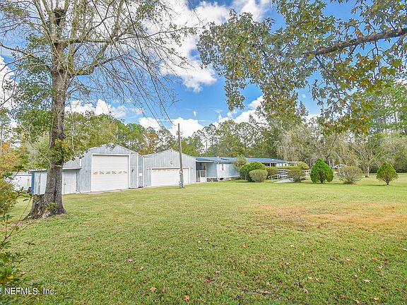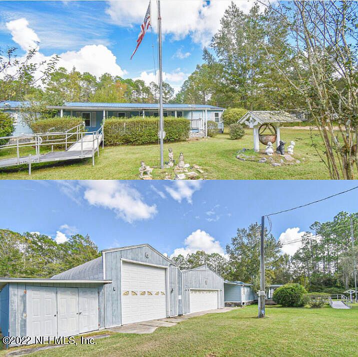 REDUCED!! This unique property sits on 1.38 groomed acres. The home has 3 bedrooms and 2 1/2 baths. The master ensuite has a jetted tub for relaxing. Spacious living room with fireplace, dining room, lovely Florida room, office, and 2 bonus rooms perfect for entertaining. Laundry room located inside. The metal roof is 5-6 years old.(metal roofs lower insurance premiums). There are two 2 car garages, 1 with a loft for plenty of storage, and a workshop. There is also another out building that can be converted back into a 1 car garage. security lighting. Just 2.8 miles away is a fish camp with an accessible boat ramp. This house is ready for you to make it your home!