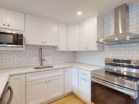 This 3/4th floor Townhouse is 3 Bedrooms 2 Full bathrooms with bonus loft space. The 25ft Bay windows flood the townhouse with natural light. The grand unit entry features herringbone stone detail inlay Electric fire place for energy efficient ambiance at the click of a button. You have room by room heating and cooling control also high efficiency electric at the click of a button. The kitchen area has a full walk in pantry, marble look durable quartz counters, recessed microwave, range hood, Full size French door SS fridge, complete with Doggy nook- woof. You have a full size washer and dryer on main level with full tub bath complete with marble vanity split between two full-size bedrooms. Up the stairs to the loft space a great study/office/studio/ sitting room greets you. The master suite has a large master bath on suite with stand up shower and marble vanity. The Building is key fob key access and guests may buzz your cell phone to be text confirmed in. The mail room is inside for safe and secure mail and package delivery. 'The Vanguard' features 24/7 HD security, is extremely well lit, and professionally managed. The halls and grounds are Cleaned weekly. There is a bike rack on side and cedar pergola out back open to all occupants. The city 'Pulaski' lot is directly next door if you desire parking its a small extra fee. The building sits 2 blocks to Yale University on Upper State St. 1 block to Orange st up a quant tree lined one way streets either Eld st or Pearl. It has 10+ restaurants within a 3 block radius and is a five minute walk to East Rock Park. Zillow ranked 92/100 "Walkers Paradise". The Vanguard on State will be an amazing place to live in New Haven for decades to come please be the first to call it home. 06/01/2025-05/31/2026