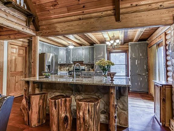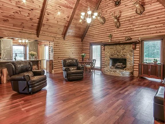 Beautiful 4 bedroom 3 bath Log Cabin Home with full basement has Brazilian Hardwood floors thoughout. This is a remarkable piece of property with over 31 acres featuring a 5 stall horse barn including a tack area, an areana. 3.5 acres is fenced. Georgous 5+ acre lake in the back of the house and view of another lake to the left of house. A 2 car garage is plumbed for a bath and has extra storage above.