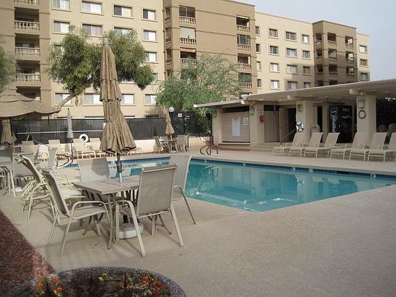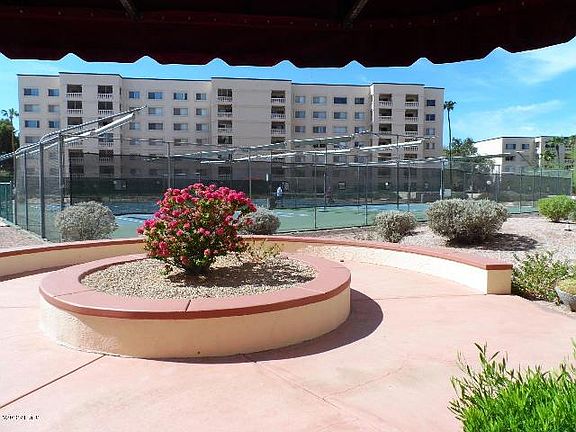 Highly upgraded 2 bedroom, 2 bath condo with private,newer kitchen with beautiful cabinets, built-in microwave, purified water at kitchen sink. Tiled floors, walk-in pantry are, upgraded tile floors in hallways and both bathrooms and the dining area. Both bathrooms are upgraded with newer vanities. Ceiling fans in master, wood floors in bedroom, great room, and outside balcony. Nice north facing balcony overlooks a quiet green area. Scottsdale Shadows has great community amenities including a 9 hole golf course, tennis courts, 3 heated pools and spas, clubhouse, exercise room, and much more! HOA dues include all this plus air conditioning and heat. AC was replaced in July of 2011.
