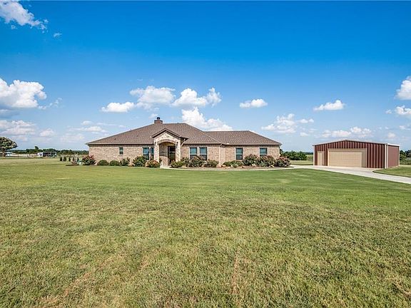 Beautiful Ranchette with almost new custom built home, pond, and huge worksop on 5.5 acres! Only minutes from Lake Ray Roberts this great property is situated perfectly for beautiful views and quiet country living. Inside is nice etched faux wood concrete floors for easy maintenance, great open floor plan with views of the pond and lush green pasture, gorgeous kitchen cabinets and granite, large master suite, and nice large patios to enjoy the views! This home won't last long!