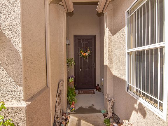 Highly desired corner lot, 4 bedroom 2 bath home with beautiful matured landscaping that can take care of itself. This little touch of heaven is perfect for a gardener seeking their own private oasis! There are vaulted ceilings, two large living areas and plenty of windows throughout to be able to enjoy the natural light. The split floor plan gives the primary bedroom in the back of the home plenty of privacy and has a bedroom near the front of the home which could easily and conveniently be used as a den, office space or a bedroom if needed. Out the back you are immersed in tranquility with a fully landscaped backyard and a covered patio which provides a great space to relax after a long day. 2 Large pots in front and 4 large pots and the fountain convey. One of the bedrooms could be used for traveling nurses, a family member or friend needing private access and a private courtyard. This home has so much to offer pictures truly do not give it justice. Pronghorn Ranch offers an abundance of amenities that will make living in this area so much more enjoyable. With nearby RV storage capabilities and so much more with this area and its growing needs.