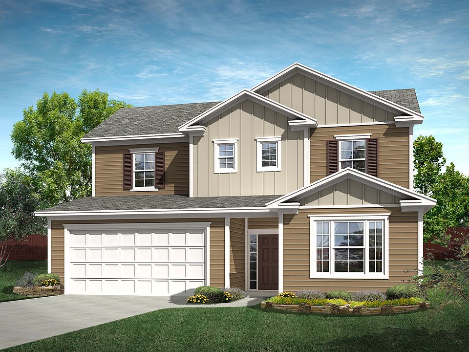 The Tensley offers a very flexible plan, from the first-floor bedroom and full bath, to the optional second-floor Laundry space, and Loft/Fifth Bedroom option...even down to the storage area in the garage. The Kitchen includes an island and pantry, with a door leading to the rear covered porch. Convert the porch to a Sunroom for additional living space. The Mudroom offers space to add a drop zone. Upstairs, the Premier Suite includes a walk-in closet and bathroom with double sinks and large walk-in shower. Note: The vaulted ceiling in Bedroom 4 is elevation specific; see Sales Consultant for details.