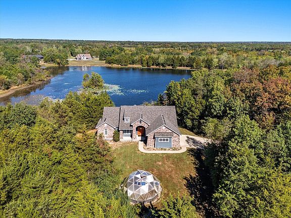NEW PRICE! MUST SEE Just 10 minutes from Columbia and only 6 miles from the airport, this extraordinary craftsman-style home sits on 10 private, wooded acres with partial ownership of a serene, crappie-stocked lake. Designed for both beauty and function, the home blends luxury finishes with nature-inspired living. Expansive windows bring in natural light and panoramic lake views, while the layout offers flexibility and comfort with 4 bedrooms, 3 full baths, and a full in-law suite. Top-tier features include hardwood floors, matching custom cabinetry and solid surface counters throughout the home, an exterior self-sustaining greenhouse, and a geothermal HVAC system—all contributing to an energy-efficient, low-maintenance lifestyle. The newly finished walkout lower level adds a second full kitchen, dining and living areas, two bedrooms, and a private entrance-ideal for multigenerational living, guests, or long-term stays. Outdoors, the award-winning Growing Spaces geodesic dome greenhouse creates a sustainable, self-regulating ecosystem for year-round gardening. Solar panels power the fans, filter, and water pumps, while the system lets you irrigate from the internal tank or automatically from a home water source. A high-efficiency Buck wood stove adds to the home's energy-conscious design, and abundant wildlife- including bald eagles- make this a true nature retreat. Though tucked away, you're just minutes from Columbia, Fulton, and Jefferson City. Privacy, sustainability, and style- this property has it all.