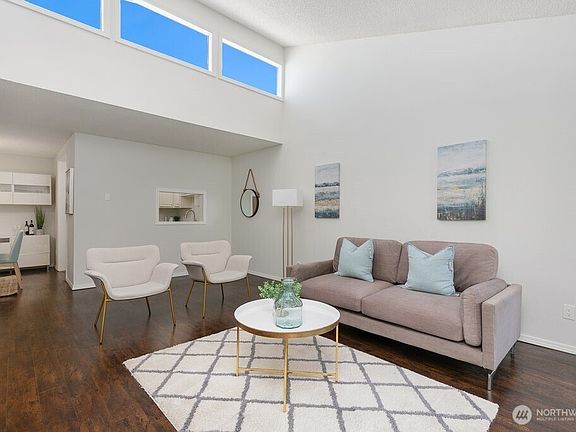 Walk to everything downtown Mercer Island—including shopping, dining, parks, and the upcoming light rail station—from this top-floor, light-filled end unit! Soaring vaulted ceilings and large windows create a bright and open feel throughout. Enjoy a spacious layout with a seamless flow between the living and dining areas, plus balconies off both the living room and primary suite for relaxing outdoor space. The updated ductless air conditioning system ensures year-round comfort. Two generously sized bedrooms, in-unit laundry, and two dedicated parking spaces add convenience to this well-appointed home. A perfect blend of location, comfort, and lifestyle in the heart of Mercer Island!