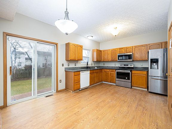 GREAT PRICE - ALMOST 1600 SQ. FT! This 3 bedroom and 2.5 bath home features an open floor plan with beautiful oak floors. Family Room showcases a vaulted fireplace. Master Suite with private Bath and vanity area/separate shower/commode area and walk-in closet. Entire inside newly painted and move in ready. Kitchen contains oak cabinets and new stainless steel appliances. Beautiful hardwood steps lead to the newly carpeted three bedrooms on the second level. Partial basement that could easily be finished to your liking. In the back you will find a stamped patio ready to hold those special cookouts and/or a place to relax. New roof placed in 2021.