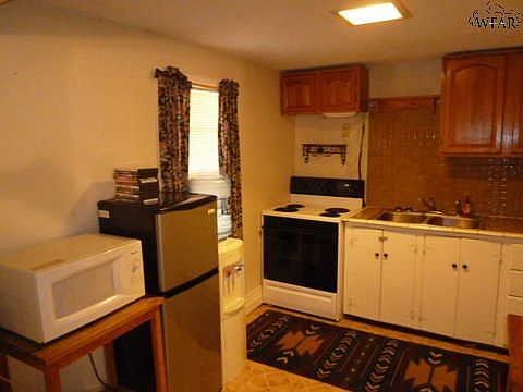 This is a cozy rear house behind the Owners house in Rural Wichita County just North of SAFB. The Owner pays the water and electric and provides an electric range, refrigerator, microwave, sofa, coffee table, desk and chest of drawers. Single person, no pets and no smokers.