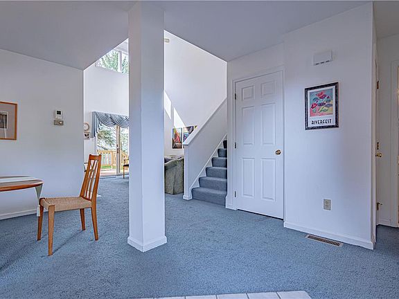 Lovely condo/townhome filled with sunlight and well maintained. The entrance welcomes you with open concept overlooking dining room and living room. The vaulted ceiling in the living room creates spaciousness and allows lots of sunlight to shine in. The wood burning fireplace will be cozy in the winter and the deck will be festive in the summer. The first floor primary bedroom is generous in size and offers walk-in closet, separate vanity, whirlpool tub, and shower room. The eat-in kitchen has a cozy eating area in front of a bay window, center island, pantry, laundry and access to garage. The 2nd floor is enhanced by a large loft perfect for an office or simply private space. A bedroom and full bath complete the second floor. The basement is the full foot print of the home and is waiting to be turned into additional family recreation area. HOA covers landscaping, snow removal, street lamps and some exterior maintenance. Close to major routes and shopping this property is move-in ready.