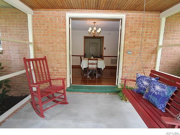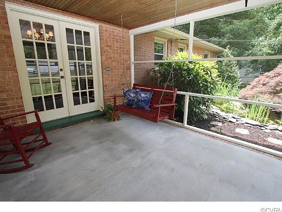This beautifully maintained brick ranch in Bon Air, situated on almost 1/2 acre, is move-in ready. The charming living space includes a large living room, a cozy family room with wood burning brick fireplace and a formal dining room with French doors leading to a screened porch. Recent updates include newly finished hard wood floors, Mannington floors in kitchen plus mud/laundry room, and vinyl replacement windows with wrapped brick molding. A special feature in home is the original ceramic tiling in both baths - must see to appreciate. Great curb appeal boasts mature trees, lovely landscaping and paved drive to garage in backyard. Sitting on screened porch enjoy level rear yard with a lovely water feature and large vegetable garden. Come home to this established neighborhood with sought after Chesterfield County Schools, convenient to restaurants, shopping, hospitals, and downtown.