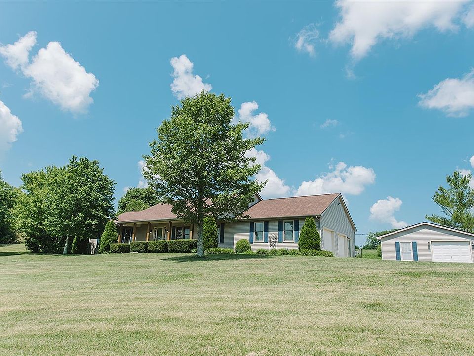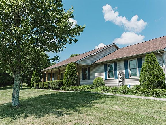 Welcome Home to 5.5 acres in the bluegrass with a well-maintained home and workshop! This Ranch presents 3 bedroom, 2 updated bathrooms, open kitchen & living room, formal family room, formal dining room, and sunroom. The owners have taken very good care of the home, some of the features include Updated Bathrooms (2017), Whole House Water Filtration (2017), New Attic Insulation (2017), New Metal Building (2017), Anderson Windows (2018), New Driveway(2018), Entry Wall (2018), New AC (2018), New Water Heater (2018), and new carpet (2020). The metal shop has 220 power, concrete floors, overhead door, porch, and setup for propane heater. The property also has a detached storage garage and a horse barn. Call today for a private tour.