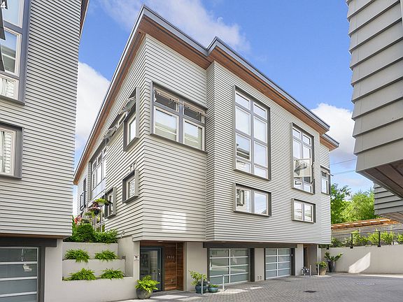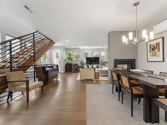 Simple living in the heart of Sellwood. Recently built in 2020, this home features lots of natural light, high ceilings, engineered wood floors and a cozy double-sided gas fireplace shared by the living and dining room. Kitchen with stainless steel appliances, custom cabinetry and quartz countertops. Custom built wooden staircase leads to two bedrooms and two bathrooms with vaulted ceilings, a walk-in closet, and a luxurious bathroom showcasing double vanity and a large soaking tub in the primary suite. Also, a street-level bedroom with a full bathroom - perfect for guests or a home office. Secure parking in your own garage. Step outside and enjoy an easy maintenance, private yard space - suited for relaxation. This home is conveniently located near the Willamette River with easy access to everything the Sellwood neighborhood has to offer, from shopping to great restaurants. Sellwood Park is located adjacent to the home with its 17 acres of trails, sports courts, sports fields, and a swimming pool. Easy access to the Sellwood Bridge.