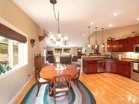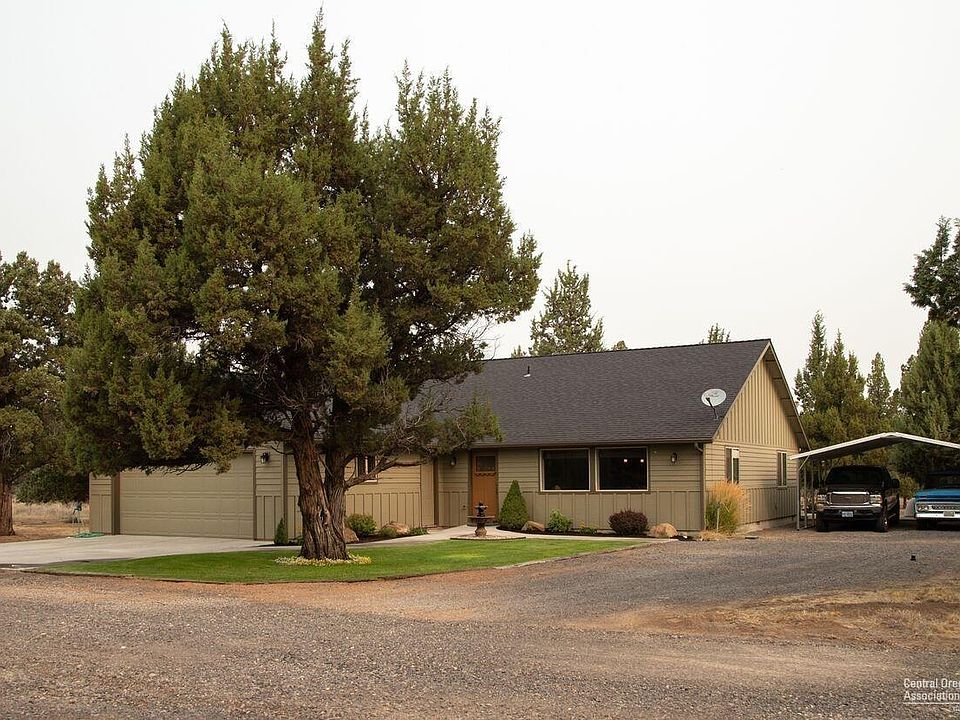 Great location between Powell Butte & Prineville.Beautifully maintained home in private setting among the junipers.Vaulted great room features can lighting,wood wrapped windows,tile entry,spacious living room,wood floored dining and kitchen,cherry cabinets, stainless appliances,kitchen aid quiet dishwasher,breakfast bar & corner pantry. Large utility/mud room has deep sink & built-in desk. Oversized, attache 2 car garage + double carport, Insulated pump house/hobby shop,additional garden shed + power to cleared future shop site.Invisible fence around approx 1 acre, Circular drive/gated entry