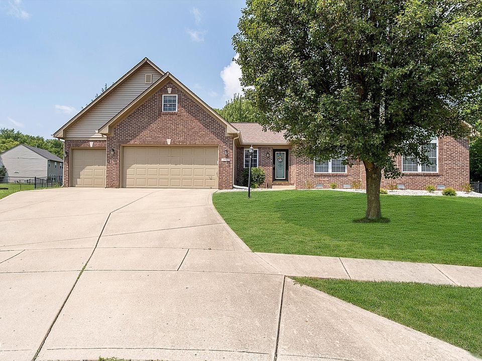 Welcome home to this well-maintained, 3 bedrooms and 2 bath ranch situated on over a half-acre, cul-de-sac lot in Meadow Bend neighborhood. This house has an open concept floorplan featuring a spacious great room, gas fireplace, eat-in kitchen, and bay window. The kitchen has a new single bowl sink and faucet, offers countertop seating, and a breakfast area. The main bath has been recently updated with a double sink vanity, new faucets, mirrors, backsplash, and vinyl plank flooring. The large master bedroom features a ceiling fan, two walk-in closets, double vanities, a garden tub, a separate ceramic tile shower, and a lot of natural light. The large upper level has a bonus room or could serve as a 4th bedroom! Outside there is plenty of room and mature trees to enjoy and entertain family and friends in your own private fenced-in backyard oasis. Other updates and amentities include: HVAC(2019), Water Heater(2024), Water Softner(2022), and new carpet throughout this great home. This well-established neighborhood is close to all Franklin Township schools, shopping, and local hospitals. Schedule your tour today!