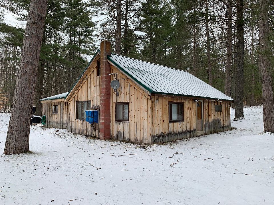 Escape to your own slice of wilderness with this cozy 2-bedroom, 1-bath hunting cabin with a wood stove and ceramic radiant heat, nestled on 8 wooded acres. Located just moments from Pickerel Lake and the expansive Pigeon River State Forest, outdoor enthusiasts will delight in the endless opportunities for hunting, fishing, and exploring nature. With nearly 50,000 acres of state land a stone toss away, this is the perfect retreat for those seeking adventure and solitude in Michigan's pristine wilderness. A few recent upgrades include new metal roofs, siding on the garage, new front entry storm door on cabin and garage, and overhead garage door.