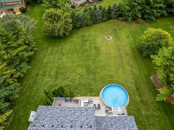 Above ground poolLarge new composite deckFinished lower levelBreakfast barFormal dining roomNewer roofPrivate country-like setting