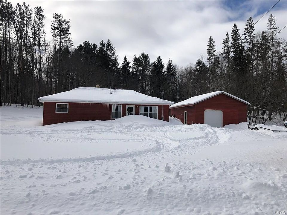 Looking for a nice ranch just outside of town? This adorable 2 bedroom, 1 bathroom has been updated throughout in 2011. A bright open floor plan includes a large country kitchen with dining peninsula, natural wood cabinets and countertops, dishwasher, and a separate dining area overlooking the large fenced in back yard. Combine this with a large open living room, plenty of windows for natural lighting, and a brand new pellet stove for ambiance and that cozy feel, and you are right at home! Two bedrooms and a third room for an office/walk in closet/laundry room. Full bathroom with washer and dryer within. All sheetrock, plumbing, electric, insulation and windows were new in 2011. Full basement with a poured concrete floor, and a 2014 wood furnace. Move in ready on 2 acres w/ 28'X30' garage