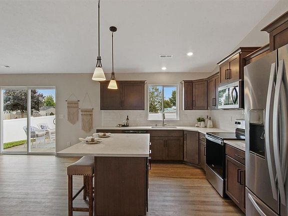 PENDING BEFORE LISTED. Liverpool Rancher. 1494 Sq. Ft. 3 bedrooms, 2 baths. Kitchen opens into L/R & D/R for the Great Room concept. Cathedral ceilings in kitchen, L/R & D/R. Huntwood cabinets, shaker door style w/Oasis stain, soft close drawers through out. 2 x 4 kitchen island, pantry & garbage disposal. Large master suite has double sink vanity, linen cabinet, separate lav, 1 pc. fiberglass 5 ft. shower, walk-in closet. Prefinsihed doors & trim. Whirlpool appliances (electric gas top range, dishwasher & microhood). 95% efficiency gas furnace, tankless hot water tank & programmable thermostat. 3 car attached garage, insulated garage doors w/windows & black hardware, PRE WIRE for garage door openers & A/C. Architectural roofing. 12 x 12 covered back patio, front yard landscaping w/sprinklers & sod. Rain gutters. File photos may show upgrades not included in list price.